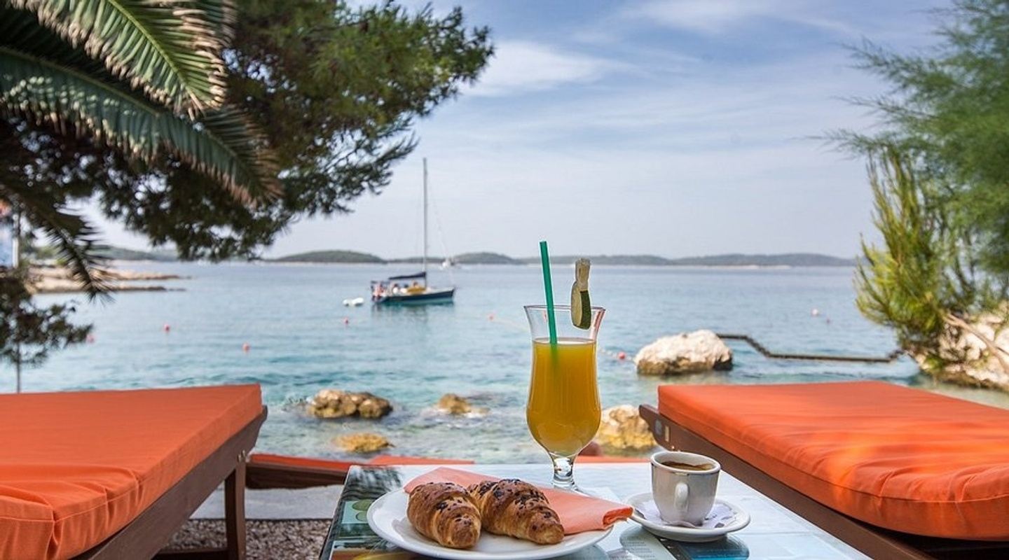 Private beach access and lounge chairs, swimming pool, gym, access to book spa appointments, onsite restaurant and snack bar offering cocktails, snacks and smoothies. Transportation to both hotels, including ferry ticket to Hvar (note: we will help you arrange departure transportation based on your itinerary but this is not included in your booking fee)